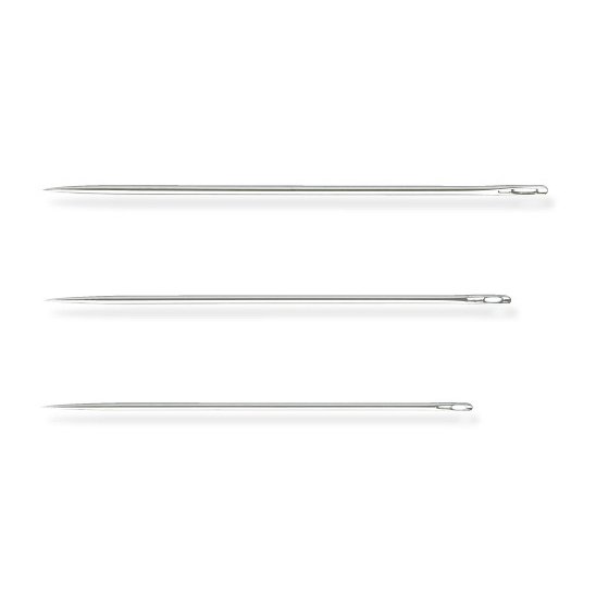 Sharps are the most popular needle for general sewing. The small and rounded eye gives the needle extra strength. The best carbon, hardened, tempered steel is used to maximise resistance to corrosion. The tapered and slightly conical points plus a polished body ensure the best penetration into fabrics. The needle eyes are smooth with no snags and protect the thread from damage.