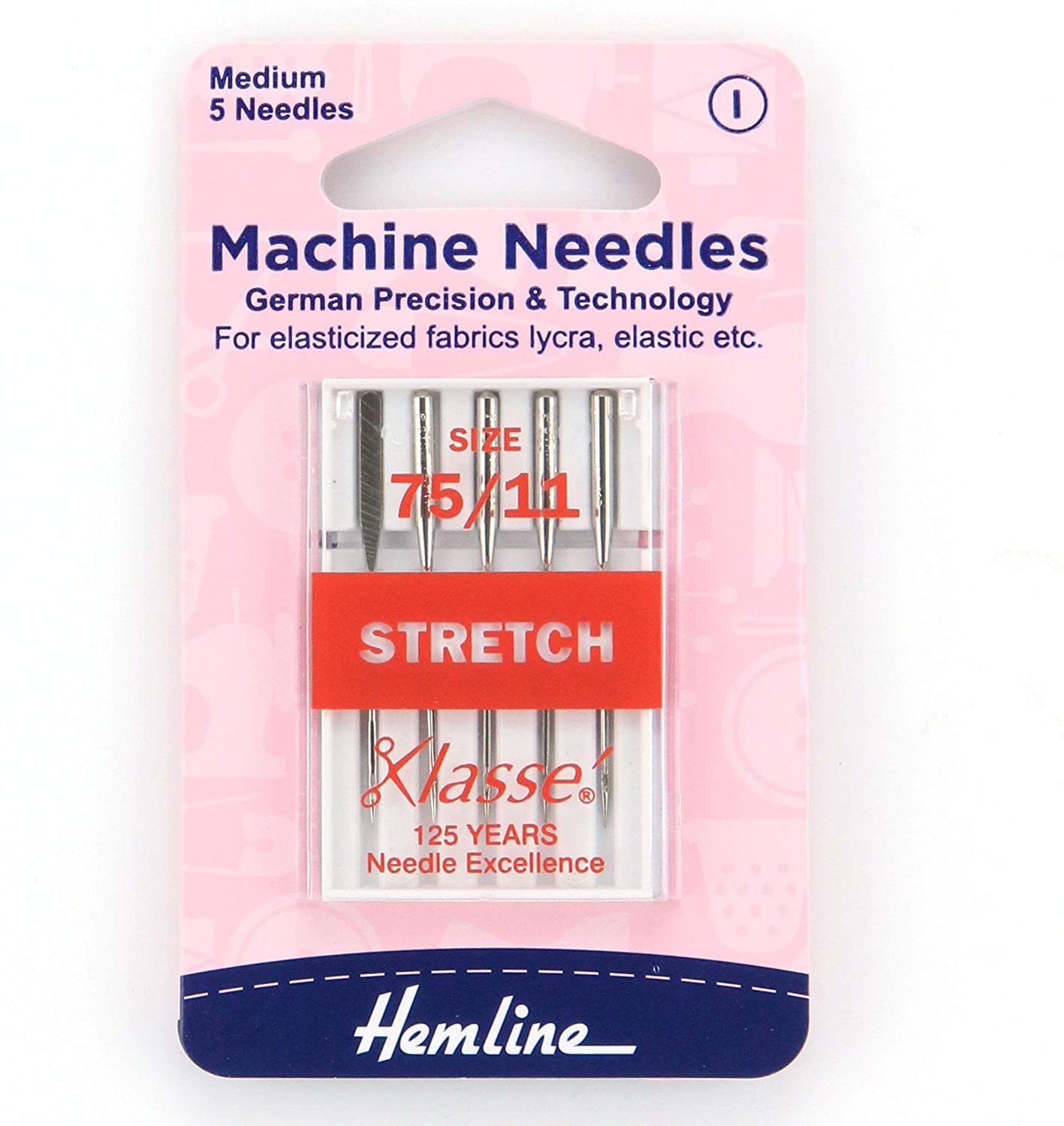 Stretch needles are specially designed for two-way stretch knits, lycra, power net, silk jersey and other highly elasticated synthetic fabrics. Size 75/11