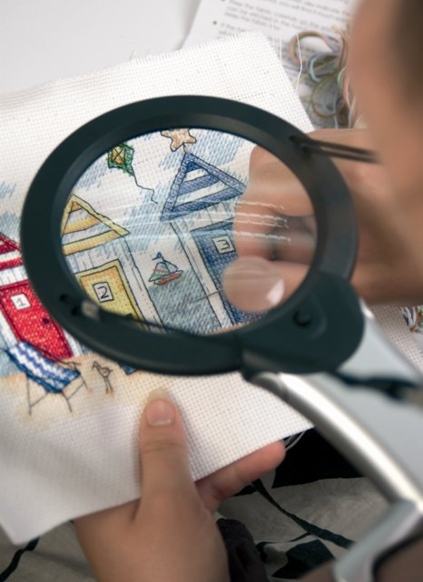 Convenient and practical - perfect for crafting. 107mm main lens with 2x magnification. Special close-up lens with 6x magnification. 2 integrated LED lights. Battery operated: 3 x AAA batteries required. Cord allows use as a neck magnifier.