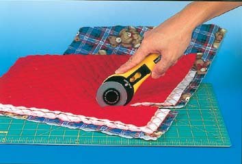 There's no reason to struggle cutting through multiple layers; it's hard on the material and hard on you. This Olfa rotary cutter is ideal for medium to heavy-duty projects. It can accommodate up to eight layers of material.