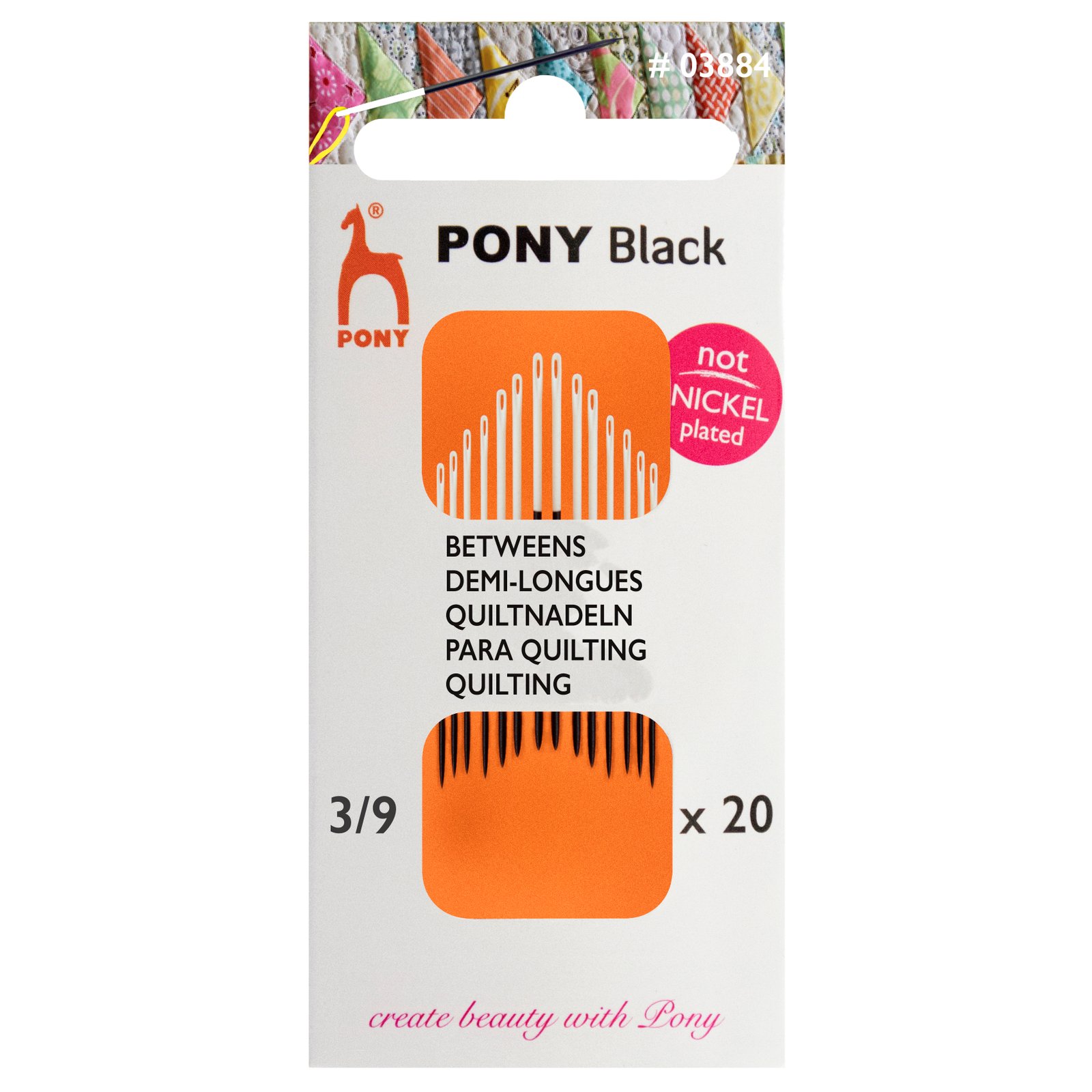 New needles in the Pony range are black and NOT NICKEL PLATED. This comes as good news to allergy sufferers. These needles have a black non-reflective surface and a white eye, which is very soothing to the eye. With a small round eye and a sharp point, betweens are short needles made for fine and even stitches on heavy fabric. Widely used for small, intricate stitching and detailed hand work. Sizes 7, 8 and 9 are perfect for hand stitching quilts. Folder of 20 needles.