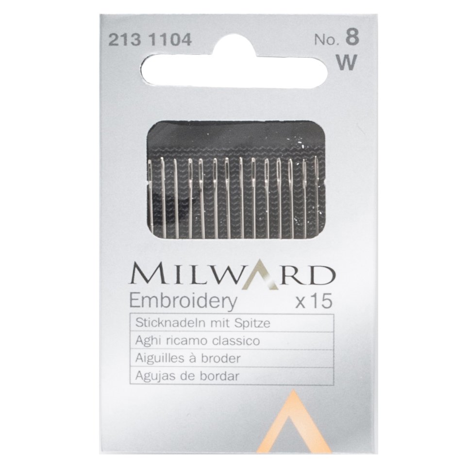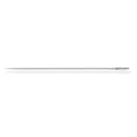 Embroidery needles have long eyes to allow a variety of embroidery thread thicknesses to be used. The best carbon, hardened, tempered steel is used to maximise resistance to corrosion. The tapered and slightly conical points plus a polished body ensure the best penetration into fabrics. The needle eyes are smooth with no snags and protect the thread from damage.
