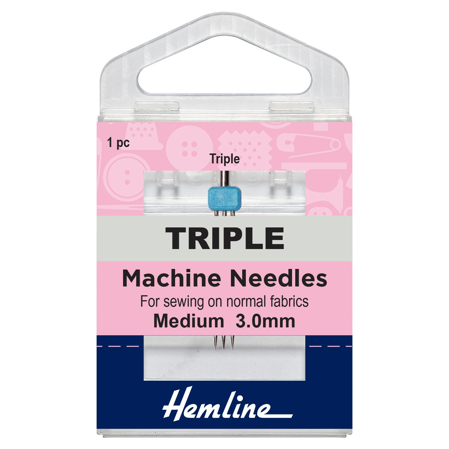Triple needles are designed for practical and decorative sewing such as pin tucking, seam finishes, top stitching etc. Triple needles should be sewn at reduced speed. Size: 80/12 - 3mm.