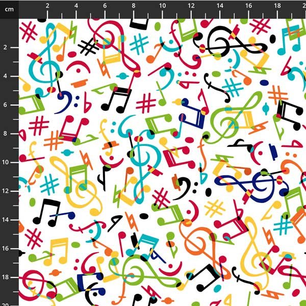 A melody of small scaled musical motifs and upbeat coordinates will create an endless repertoire of projects for all music enthusiasts. Strike up the band - Quilts, accessories, apparel, and more are in the lineup!