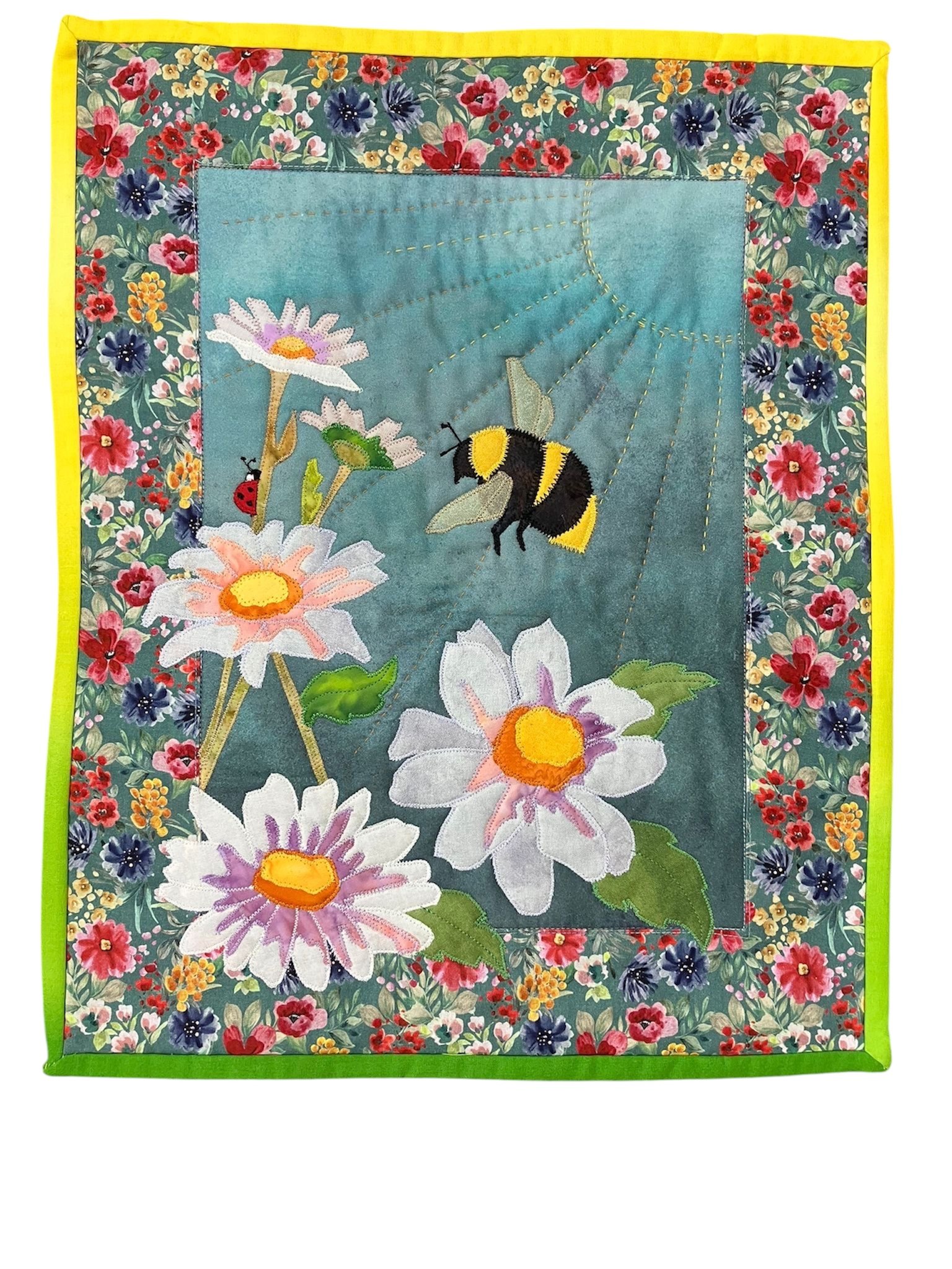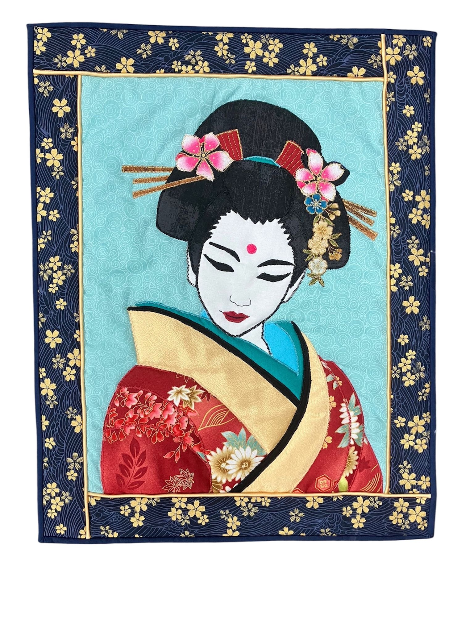 Jane has put together a range of designs to choose from depending on your preference and experience. The Daisies and Japanese Lady are fairly straightforward. The Spaniel is more involved and may need to be completed at home having learnt the technique during the workshop. All designs are suitable for someone with little or no experience of fabric collage, albeit the Spaniel requires patience as some pieces are fiddly. All designs will require finishing at home depending on what you wish to do with your collage.