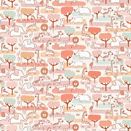 A gently coloured range which has feature fabrics with line drawn animals from the Savanna.,