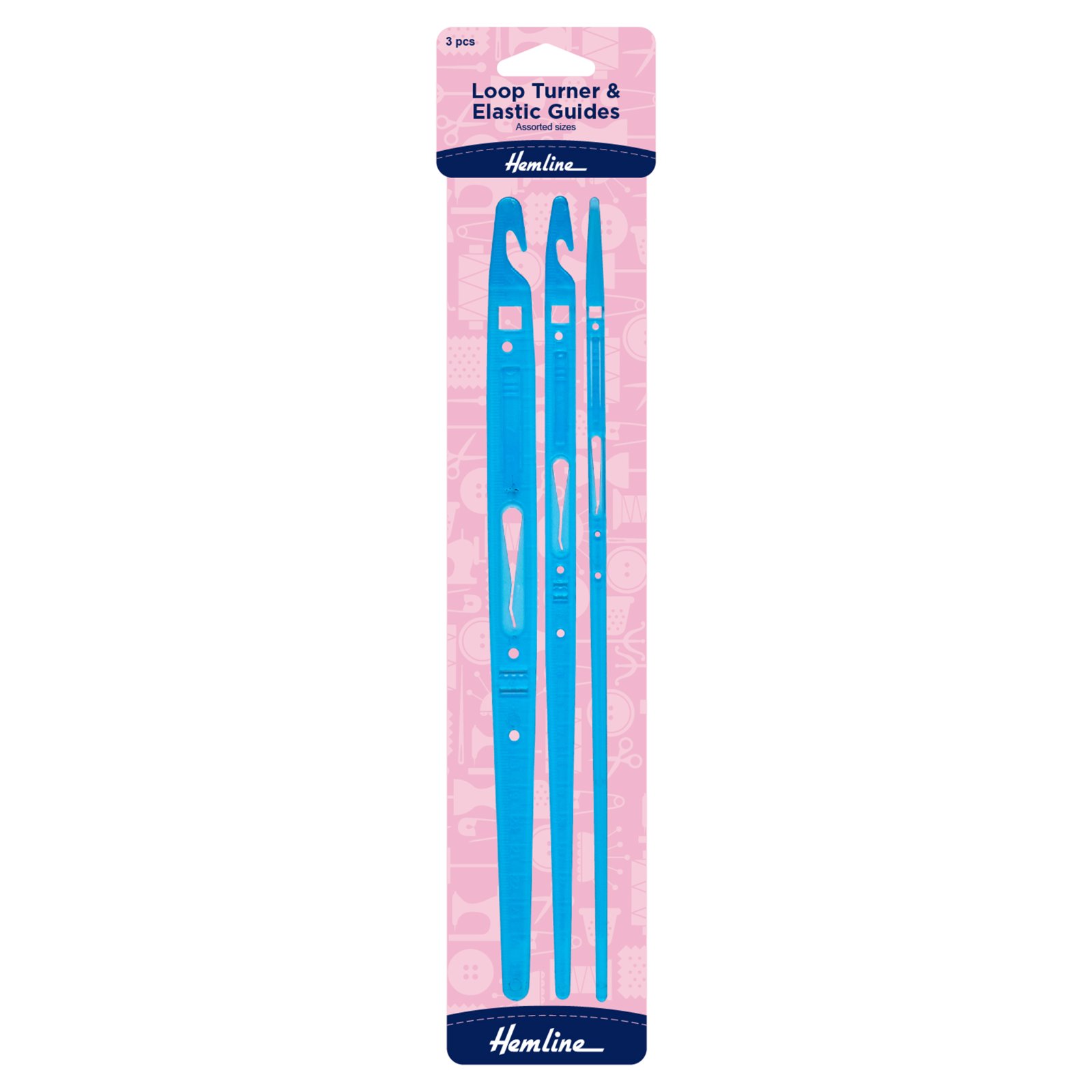 3 sizes: 268 x 6 x 2mm, 268 x 10 x 2mm and 268 x 16.5 x 2.5mm. Metric and imperial markings for easy measurements; fits most elastic widths. Perfect for inserting elastic, cord or ribbon into the waistband of a garment. Also useful for turning loops.